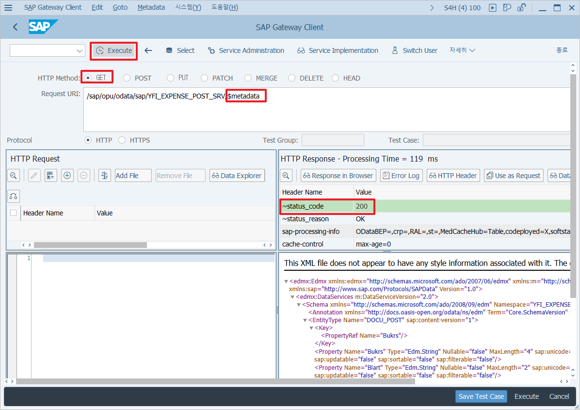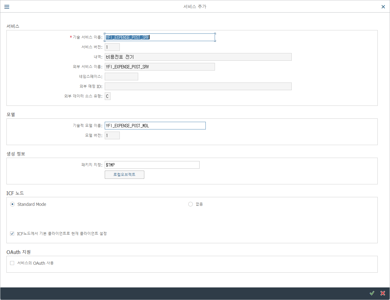 PUT 쓸때는 토큰 오류 발생하는데 SICF가서 계증구조유형 SERVICE로 실행한 뒤 저 위의 경로로 가서 GUI구성에