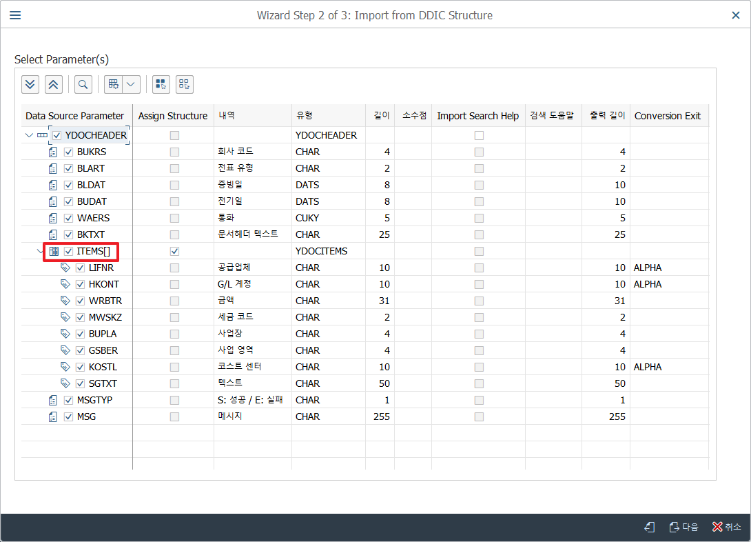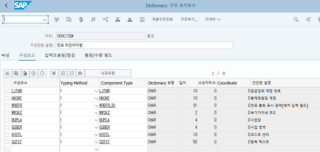 전표 라인 Structure인 YDOCITEM을 먼저 생성