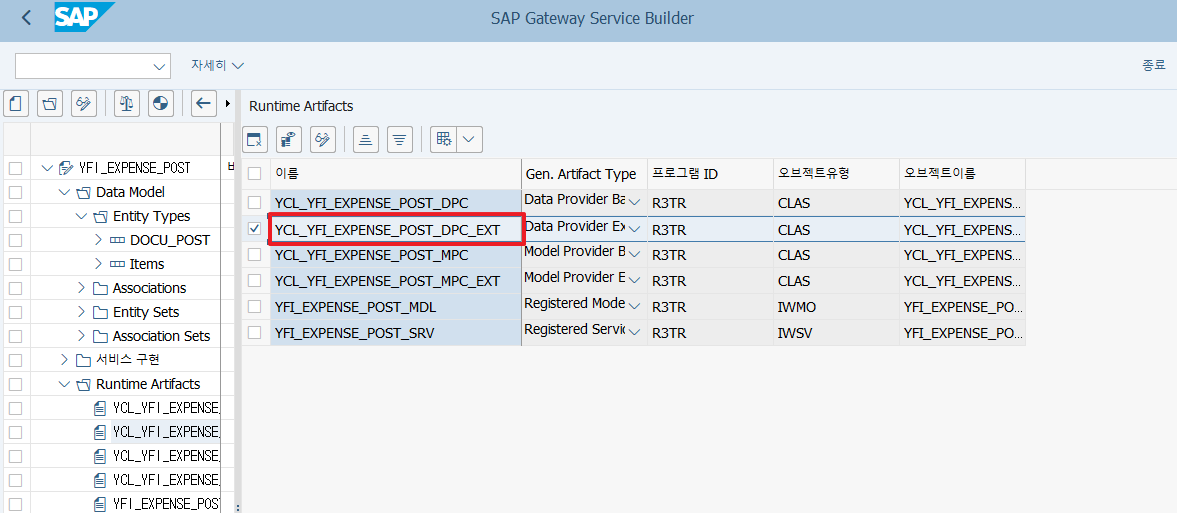 SEGW에서 DPC_EXT를 더블클릭하거나 해당 이름을 복사 후 SE24 클래스 빌더에서 편집실행