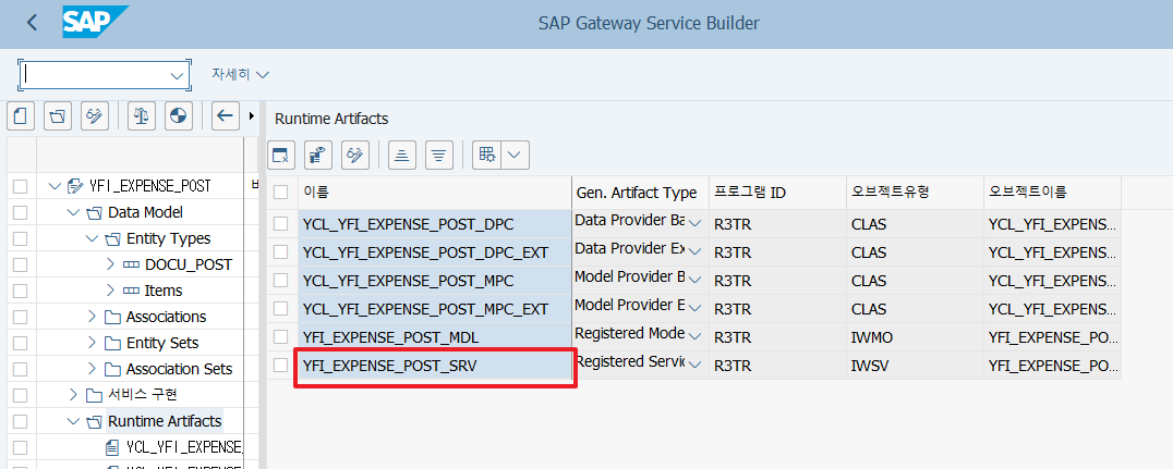 이제 서비스를 올리러 가줘야 하는데 서비스 이름이 기억이 안난다면 Runtime Artfacts 폴더에 *SRV로 끝나는 것을 복사
