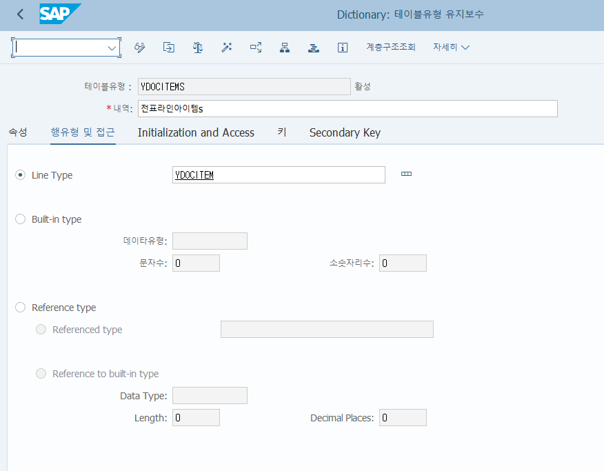 그리고 해당 Line type을 이용하여 테이블유형 YDOCITEMS 생성