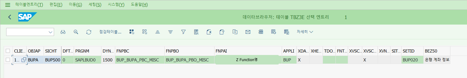 다행히 에러메시지를 E000 같은 만행을 해두지 않아서 메시지로 Function 찾아서 TBZ3E 테이블에서 해당 Function명으로 검색했다.