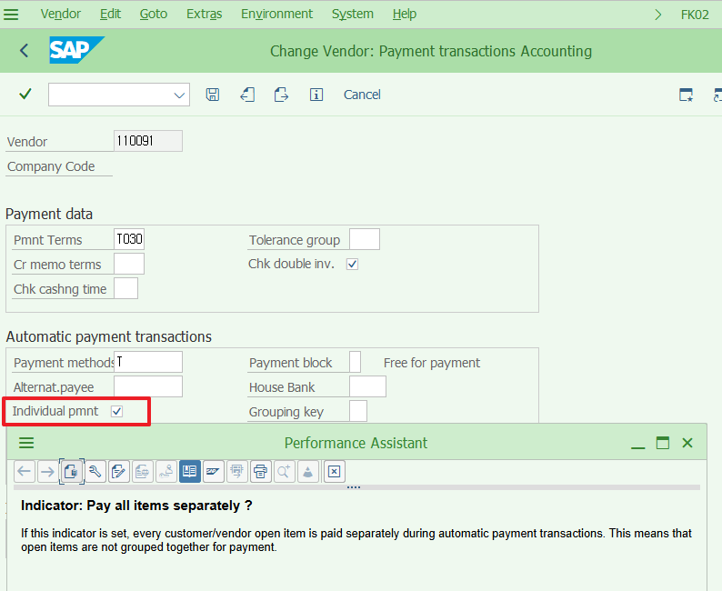 그럼 뭐가 문제일까 했는데 FK02 공급업체 마스터에도 개별 항목 지급이 관리되고 있었다.