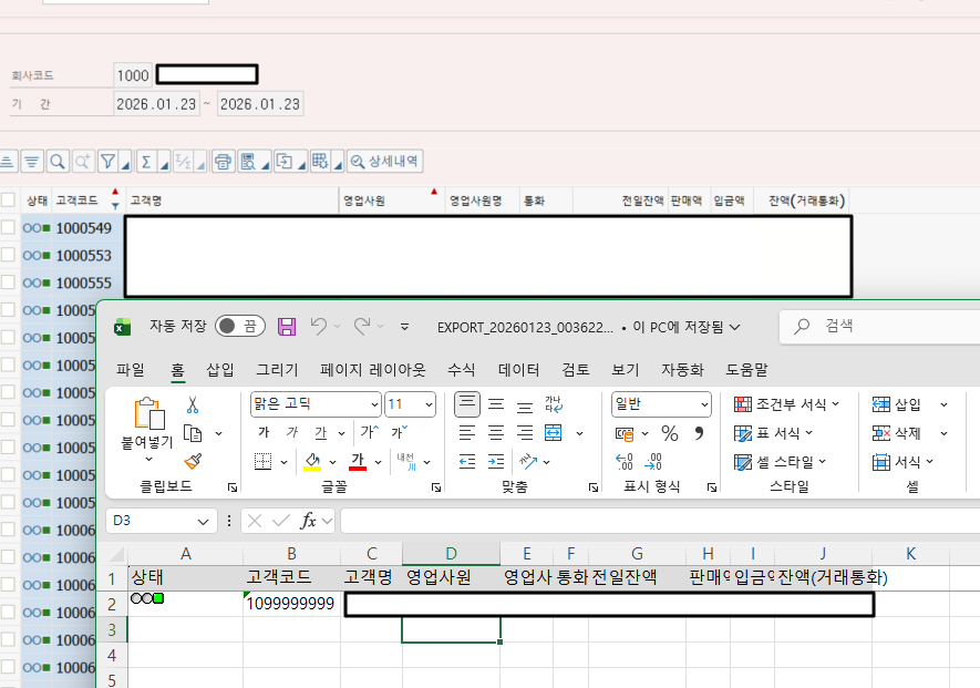 ALV 레포트에서 고객코드에 10*이라고 필터를 걸었을 때, ALV에서는 정상적으로 나오는데 엑셀로 다운로드(스탠다드 기능)하면 고객코드 10자리인 건만 나오고 8자리이면서 10으로 시작하는 데이터는 나오지 않는 현상이 있었다.
