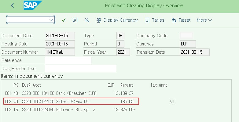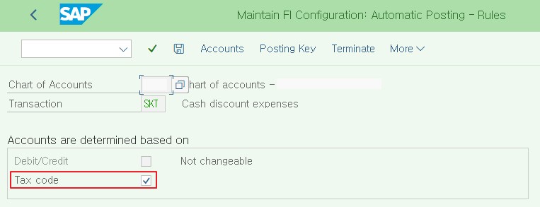 세금코드를 사용하지 않으면 G/L계정만 정의해주면 된다.