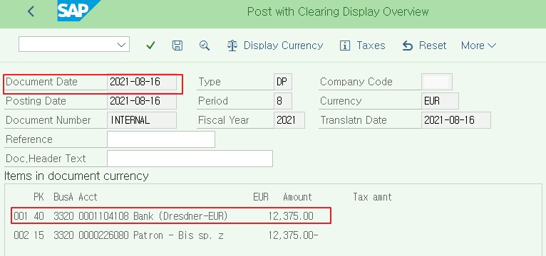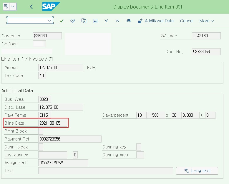An AR document of the customer has the payment term that I maintained above. Baseline Date is 2021-08-05.