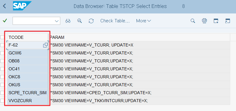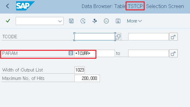 TSTCP 테이블에서 PARAM에 찾으려는 테이블명을 *TCURR*와 같은 형태로 찾으면 됨
