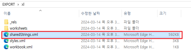 4. sharedStrings.xml 파일을 복사해서 압축폴더와 다른 경로에 저장 (바탕화면 등)