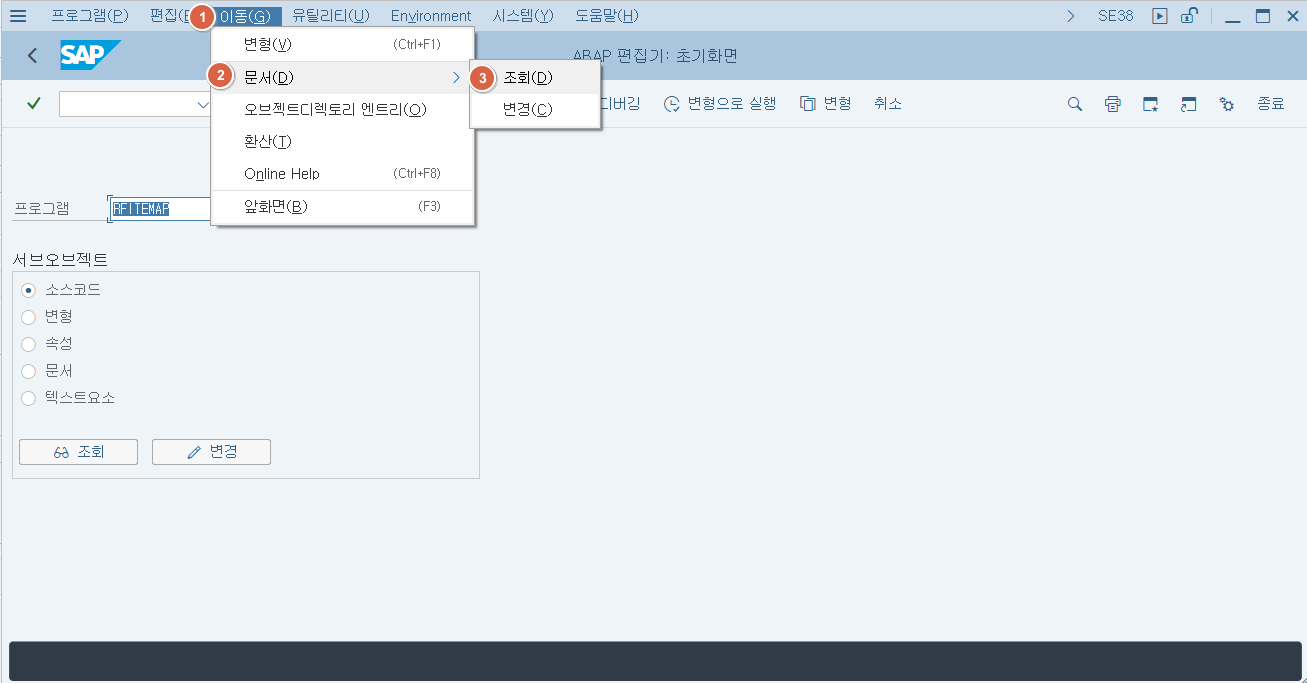SE38에서 해당 프로그램명 입력 후 이동 > 문서 > 조회에서 확인 가능